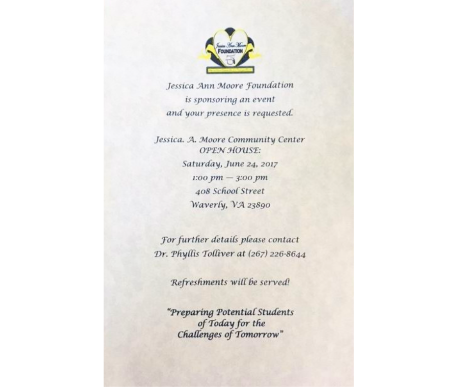 The eighth annual Jessica Ann Moore Scholarship banquet will be held May 19, 2018 at The Jessica Ann Moore Community